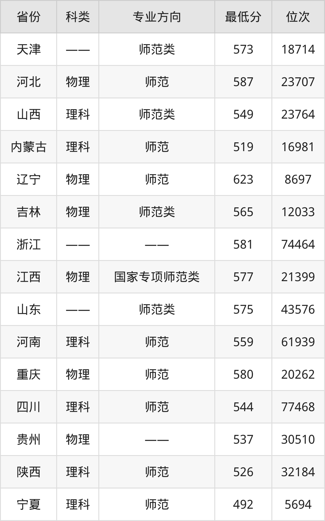 2024年天津师范大学物理学专业在全国15个省市招生,录取最低分从492分到623分不等,下面老师为大家具体介绍。