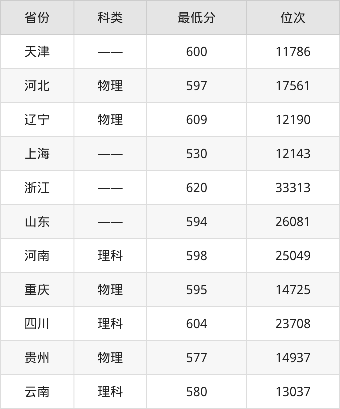 1、天津:600分