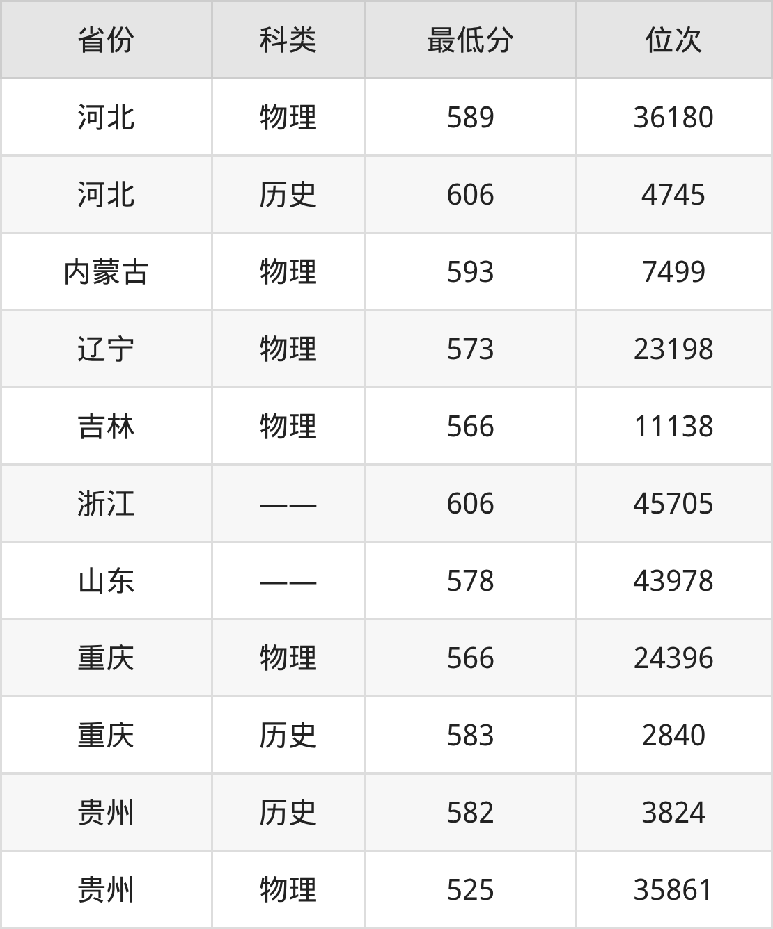 2025年黑龙江中医药大学中医学专业在贵州录取最低分:历史组是582分,对应位次排名是3824名;物理组是525分,对应位次排名是35861名。