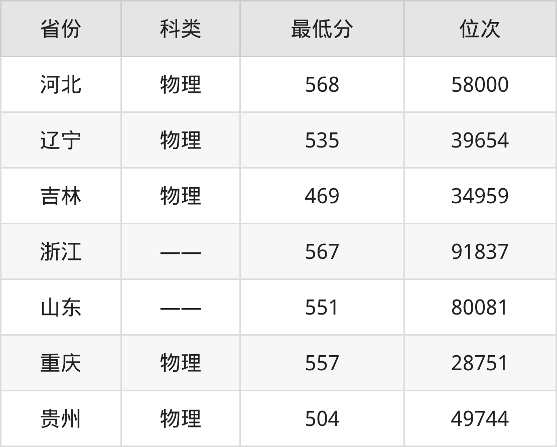 | 省份 | 首选 科目 | 招生名额 |