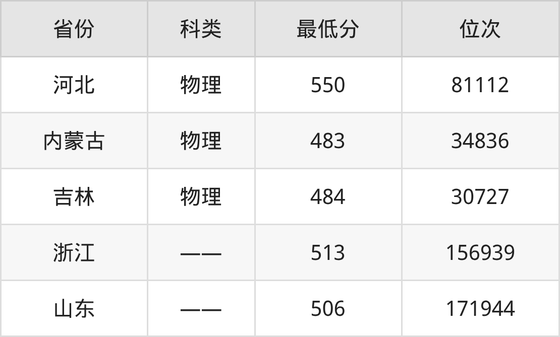 | 省份 | 首选 科目 | 招生名额 |