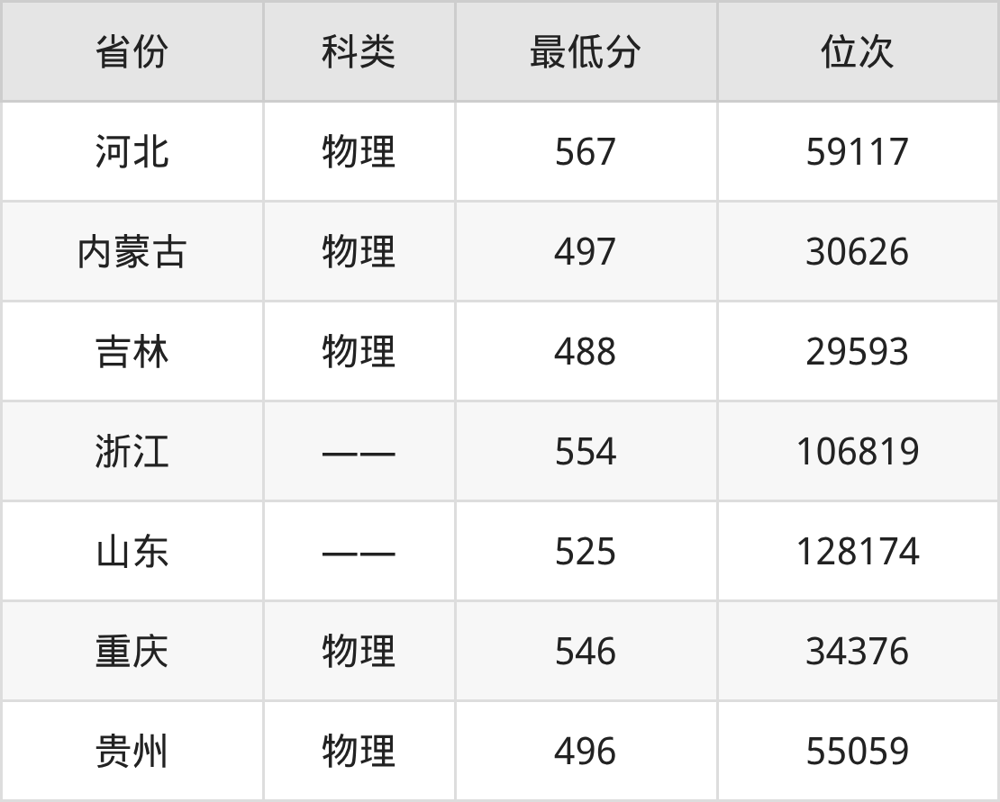 | 省份 | 首选 科目 | 招生名额 |