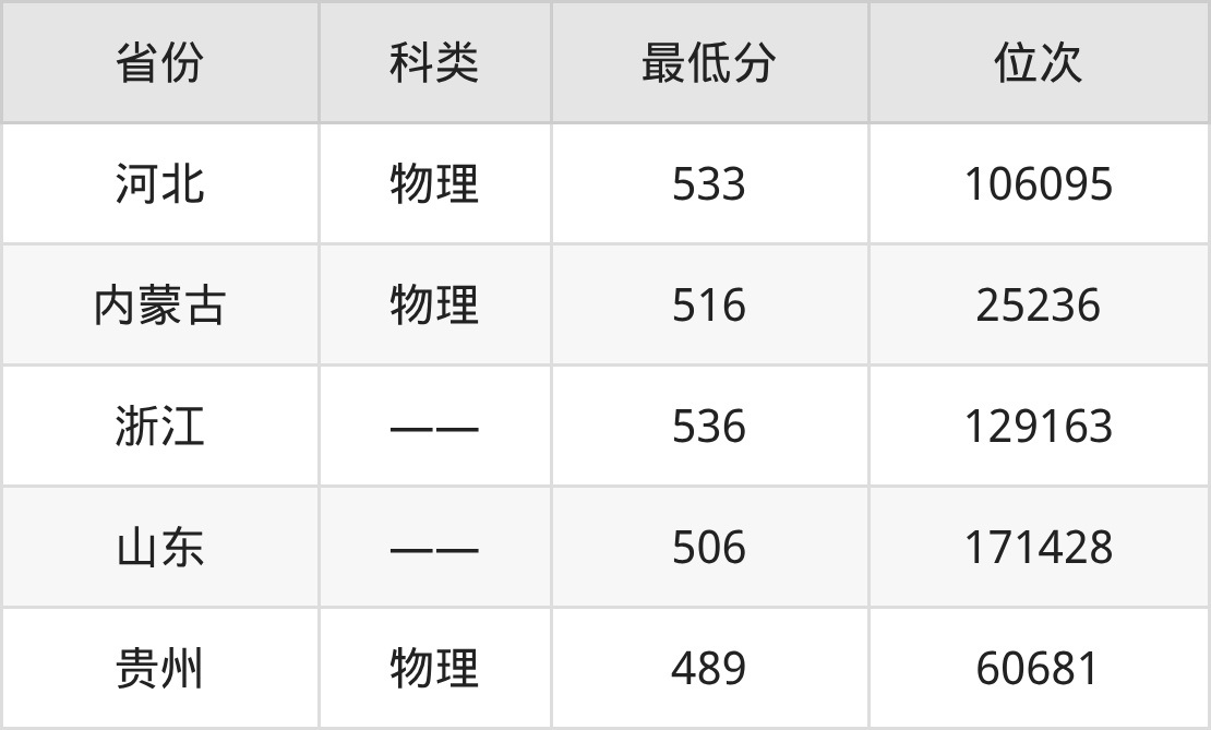 2025年安徽农业大学木材科学与工程专业在浙江录取最低分:536分,对应位次排名是129163名。