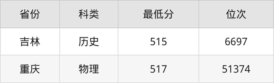 | 省份 | 首选 科目 | 招生名额 |