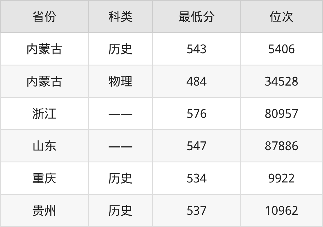 2025年内蒙古科技大学法学专业在浙江录取最低分:576分,对应位次排名是80957名。