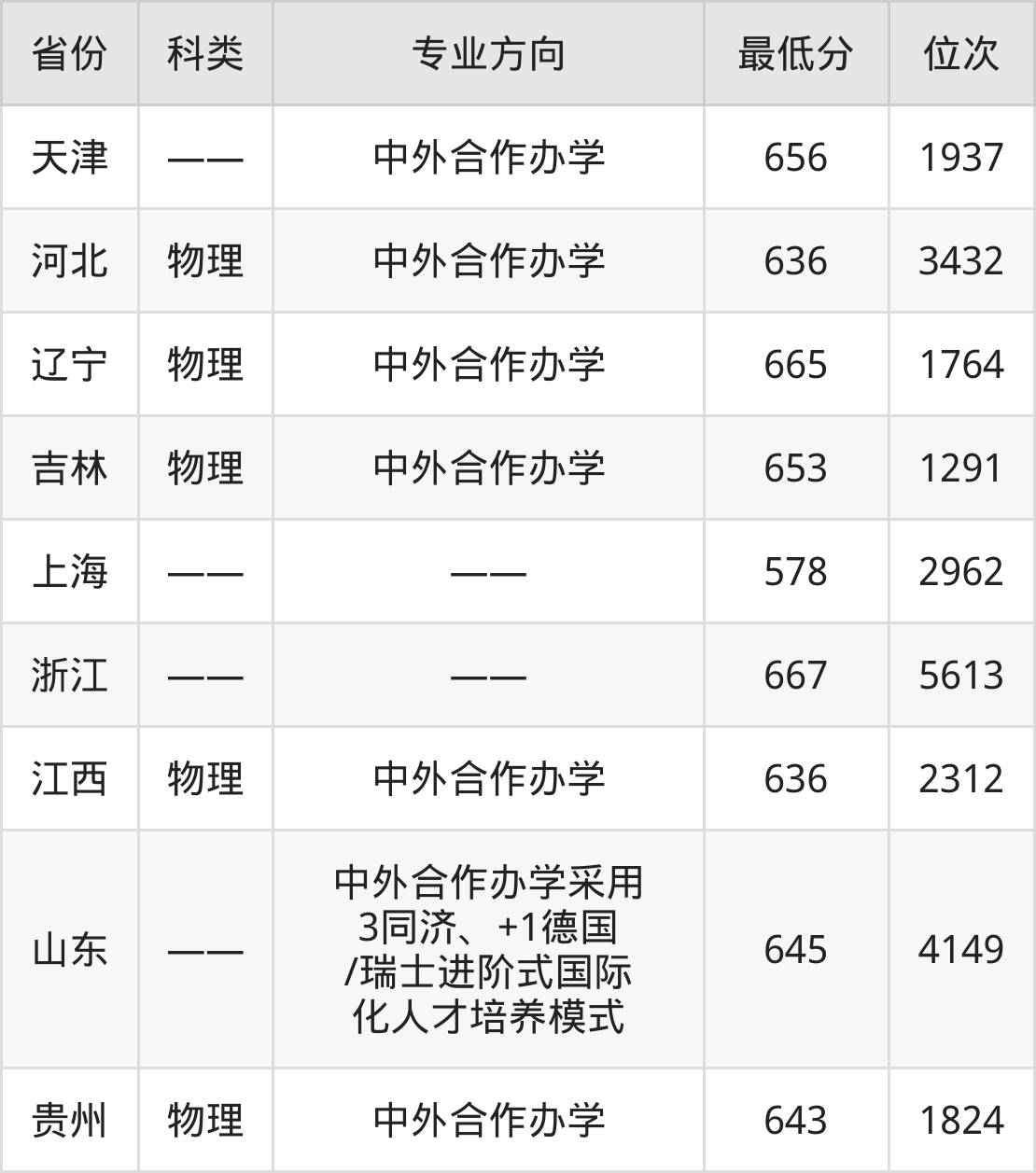 2024年同济大学机械类专业在山东录取最低分:645分,对应位次排名是4149名。