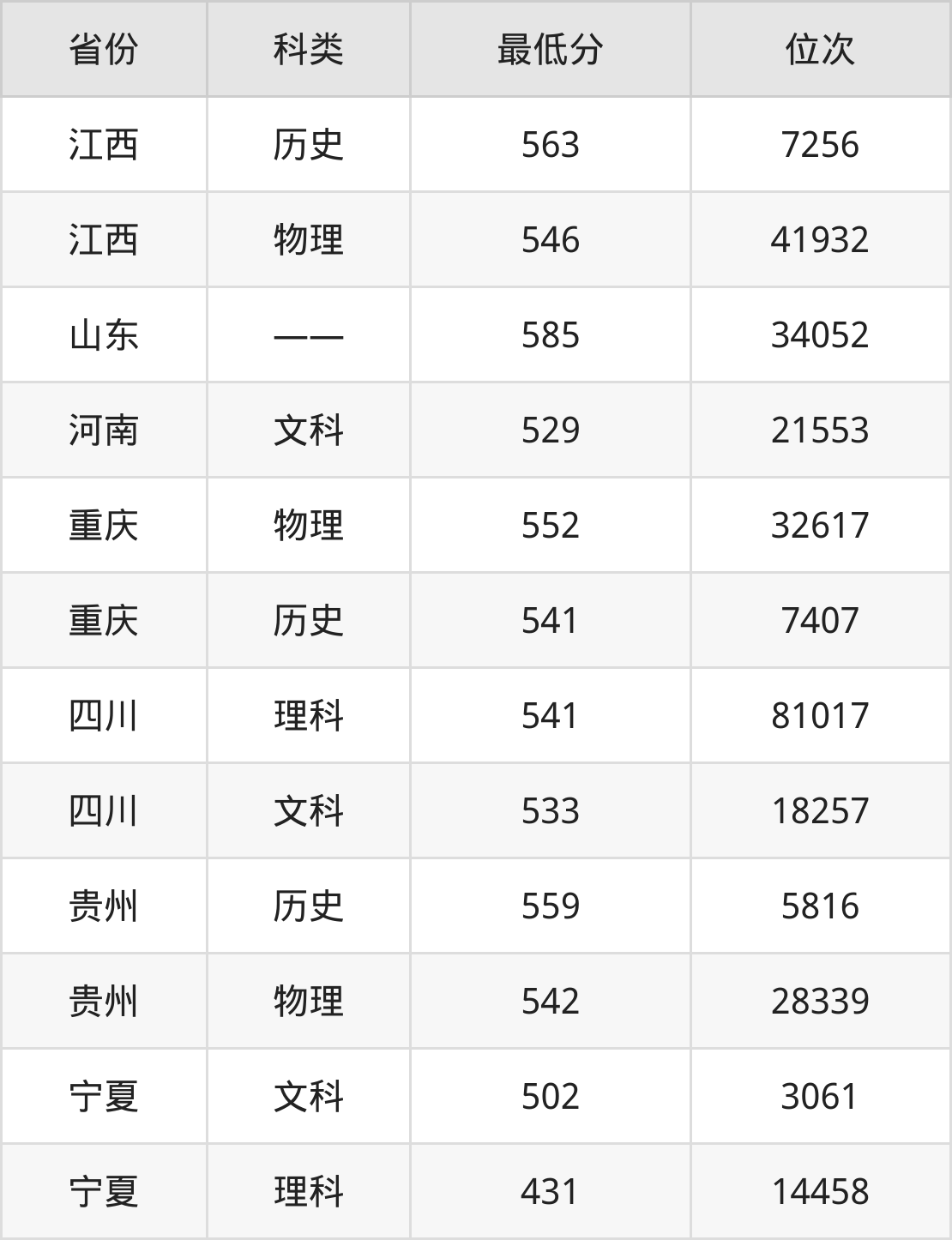 2024年重庆工商大学法学类专业在江西录取最低分:历史组是563分,对应位次排名是7256名;物理组是546分,对应位次排名是41932名。