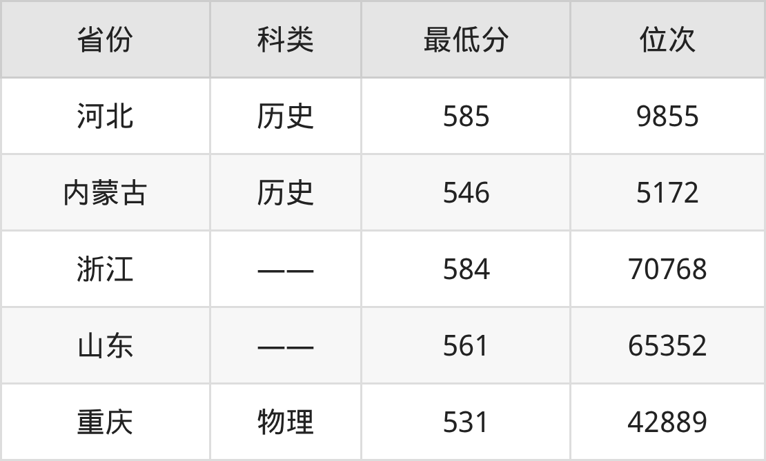 | 省份 | 首选 科目 | 招生名额 |