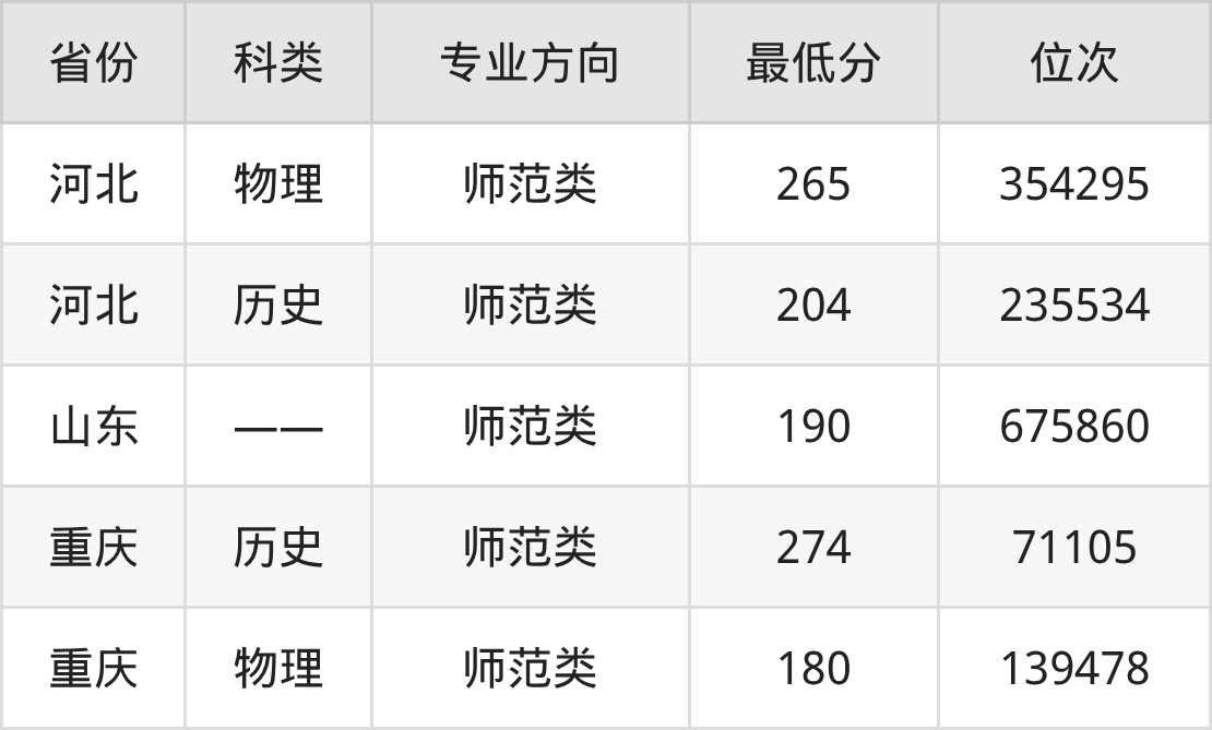 2025年四川应用技术职业学院小学教育专业在河北录取最低分:物理组是265分,对应位次排名是354295名;历史组是204分,对应位次排名是235534名。