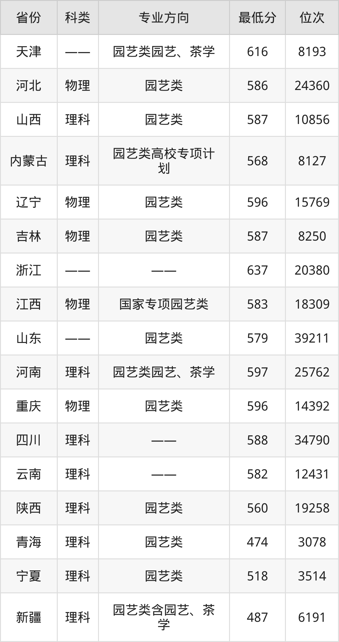 2024年西北农林科技大学园艺专业在全国17个省市招生,录取最低分从474分到637分不等,下面老师为大家具体介绍。