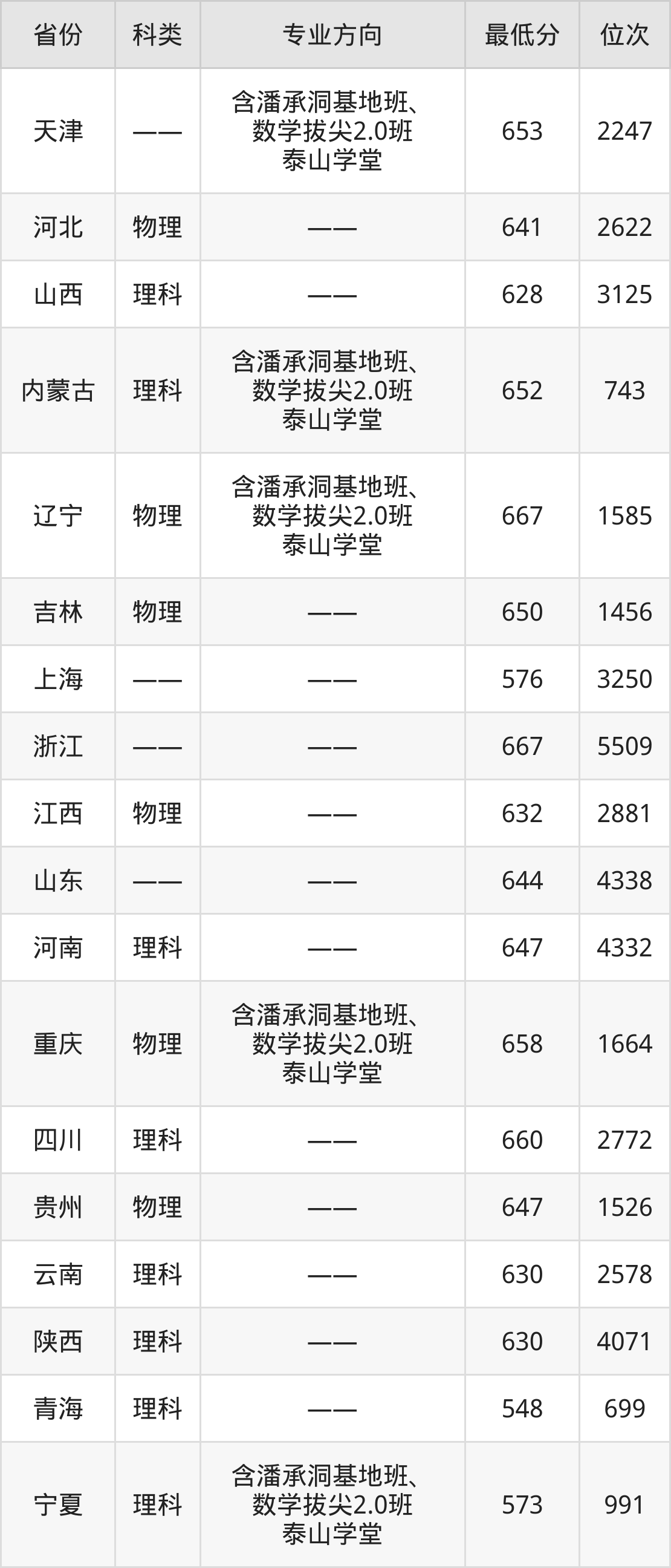 2024年山东大学数学类专业在全国18个省市招生,录取最低分从548分到667分不等,下面老师为大家具体介绍。