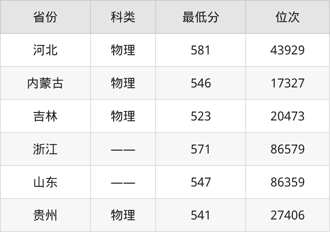 | 省份 | 首选 科目 | 招生名额 |
