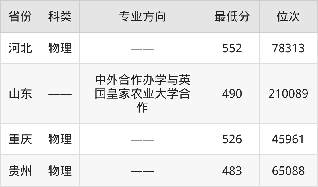 2025年山东农业大学食品质量与安全专业在河北录取最低分:552分,对应位次排名是78313名。