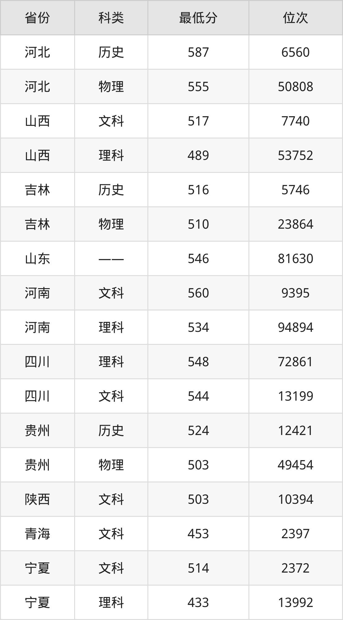 2024年山西财经大学国际经济与贸易专业在河北录取最低分:历史组是587分,对应位次排名是6560名;物理组是555分,对应位次排名是50808名。