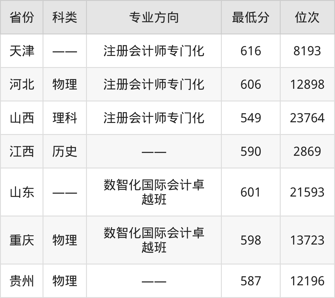2024年首都经济贸易大学会计学专业在山东录取最低分:601分,对应位次排名是21593名。