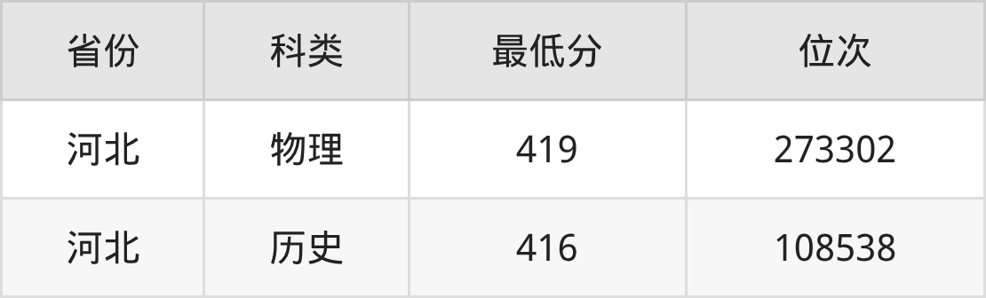 2025年河北工业职业技术大学旅游管理专业在河北录取最低分:物理组是419分,对应位次排名是273302名;历史组是416分,对应位次排名是108538名。