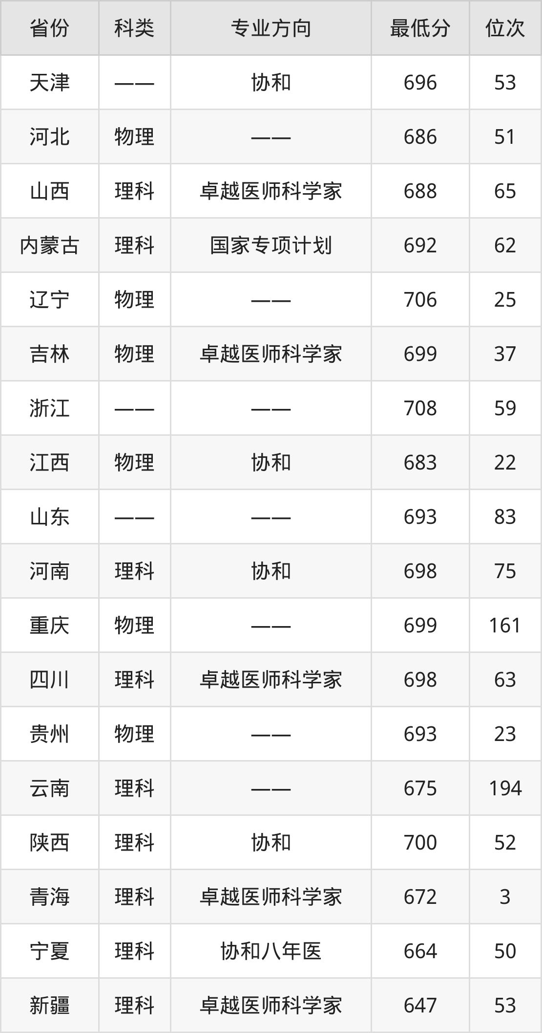 下面是2024年清华大学临床医学类专业录取分数线一览表: