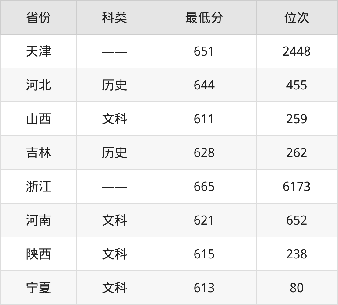2024年南开大学历史学类专业在浙江录取最低分:665分,对应位次排名是6173名。