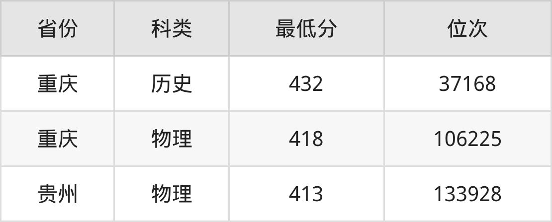 2025年重庆航天职业技术学院大数据技术专业在重庆录取最低分:历史组是432分,对应位次排名是37168名;物理组是418分,对应位次排名是106225名。