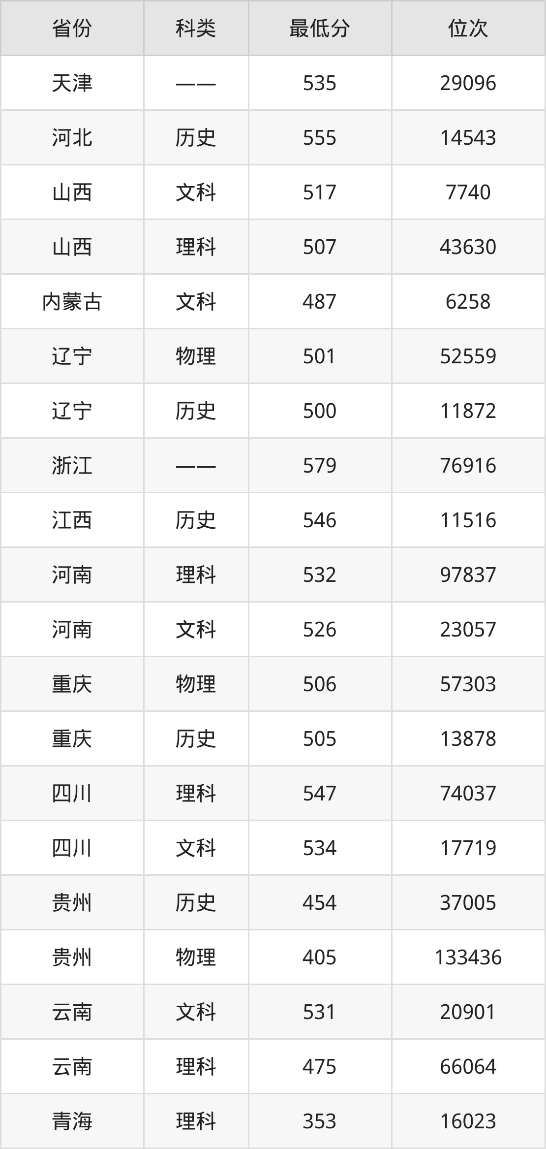2024年天津商业大学旅游管理类专业在山西录取最低分:文科是517分,对应位次排名是7740名;理科是507分,对应位次排名是43630名。
