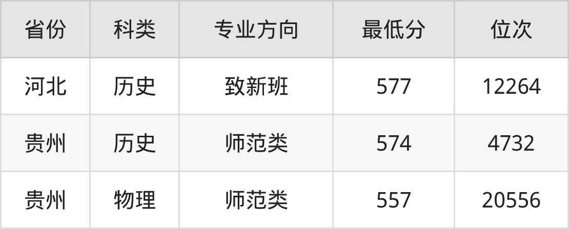2025年贵州师范大学汉语言文学专业在贵州录取最低分:历史组是574分,对应位次排名是4732名;物理组是557分,对应位次排名是20556名。