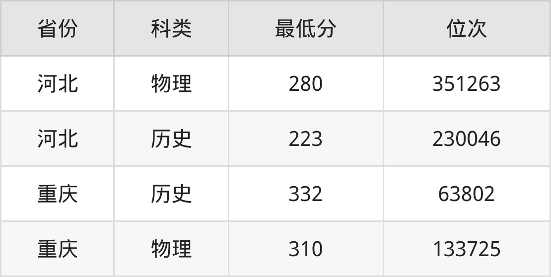 2025年重庆经贸职业学院空中乘务专业在河北录取最低分:物理组是280分,对应位次排名是351263名;历史组是223分,对应位次排名是230046名。