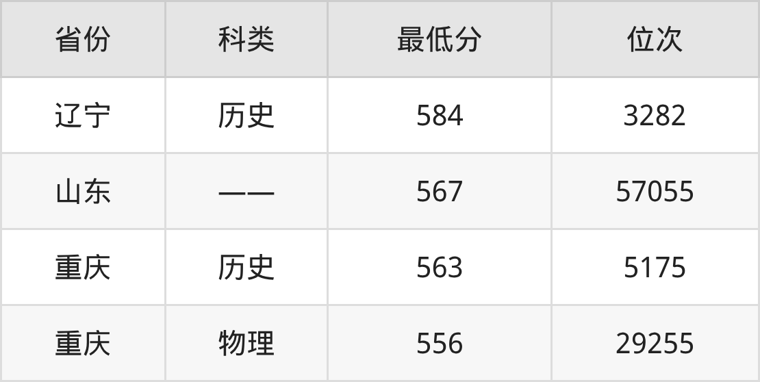 2025年成都中医药大学运动康复专业在重庆录取最低分:历史组是563分,对应位次排名是5175名;物理组是556分,对应位次排名是29255名。