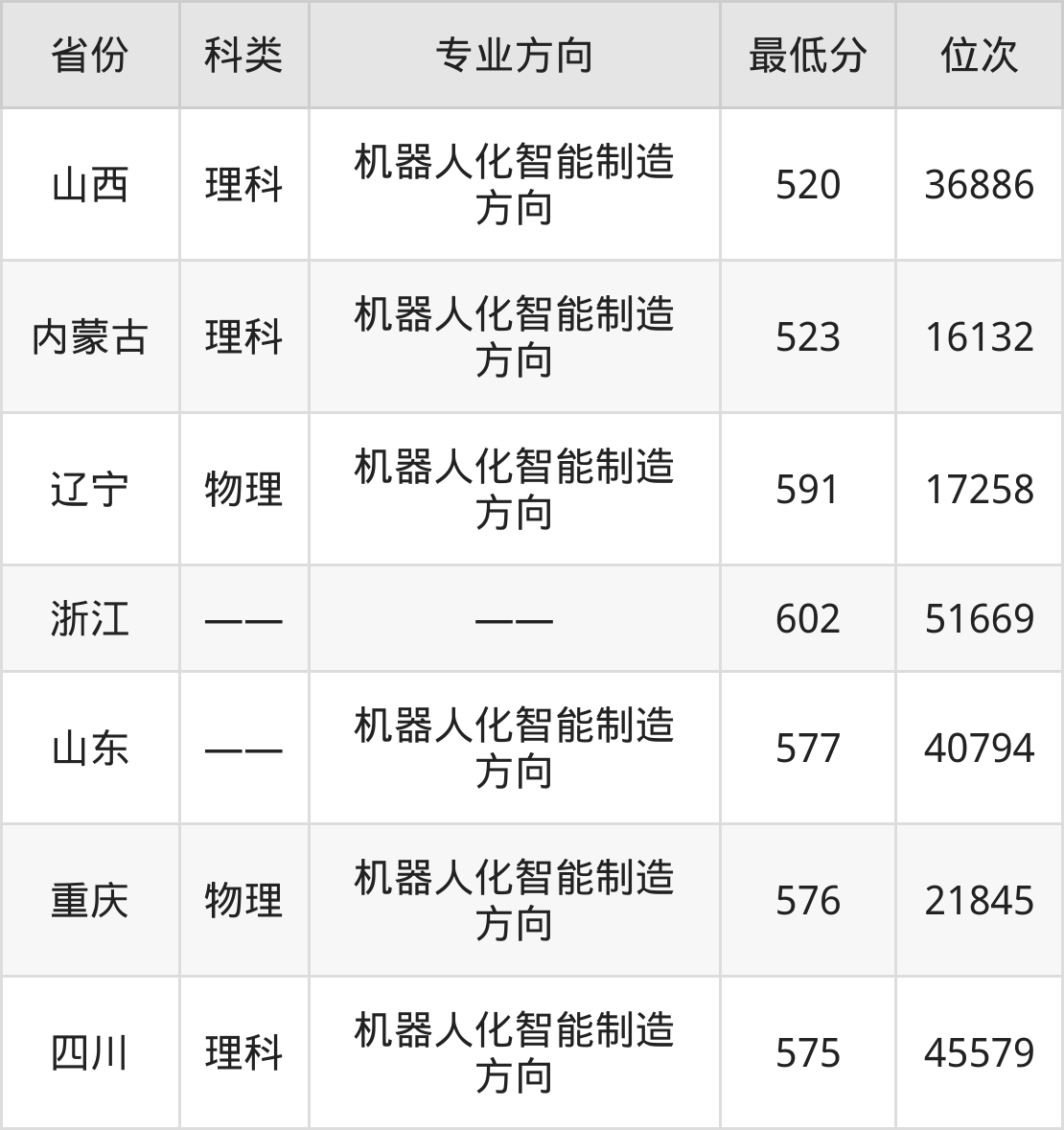 2024年武汉工程大学机器人工程专业在山西录取最低分:520分,对应位次排名是36886名。