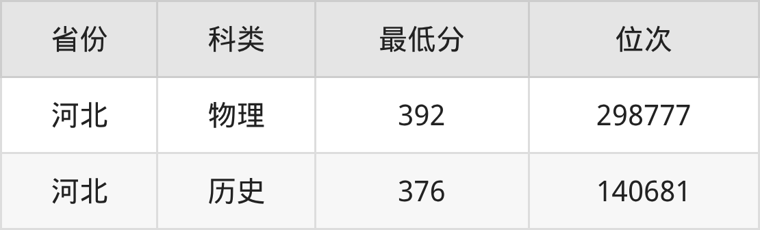 2025年湖北师范大学文理学院电子商务专业在河北录取最低分:物理组是392分,对应位次排名是298777名;历史组是376分,对应位次排名是140681名。