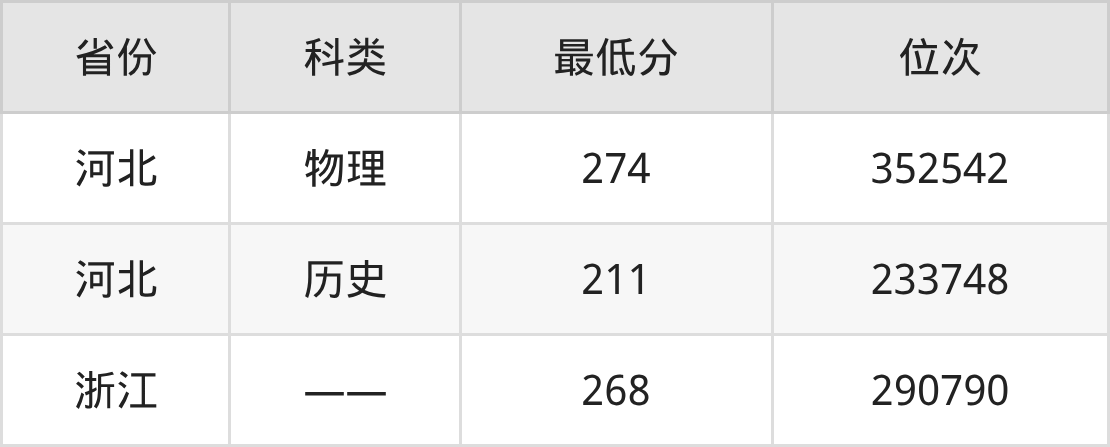 | 省份 | 首选 科目 | 招生名额 |