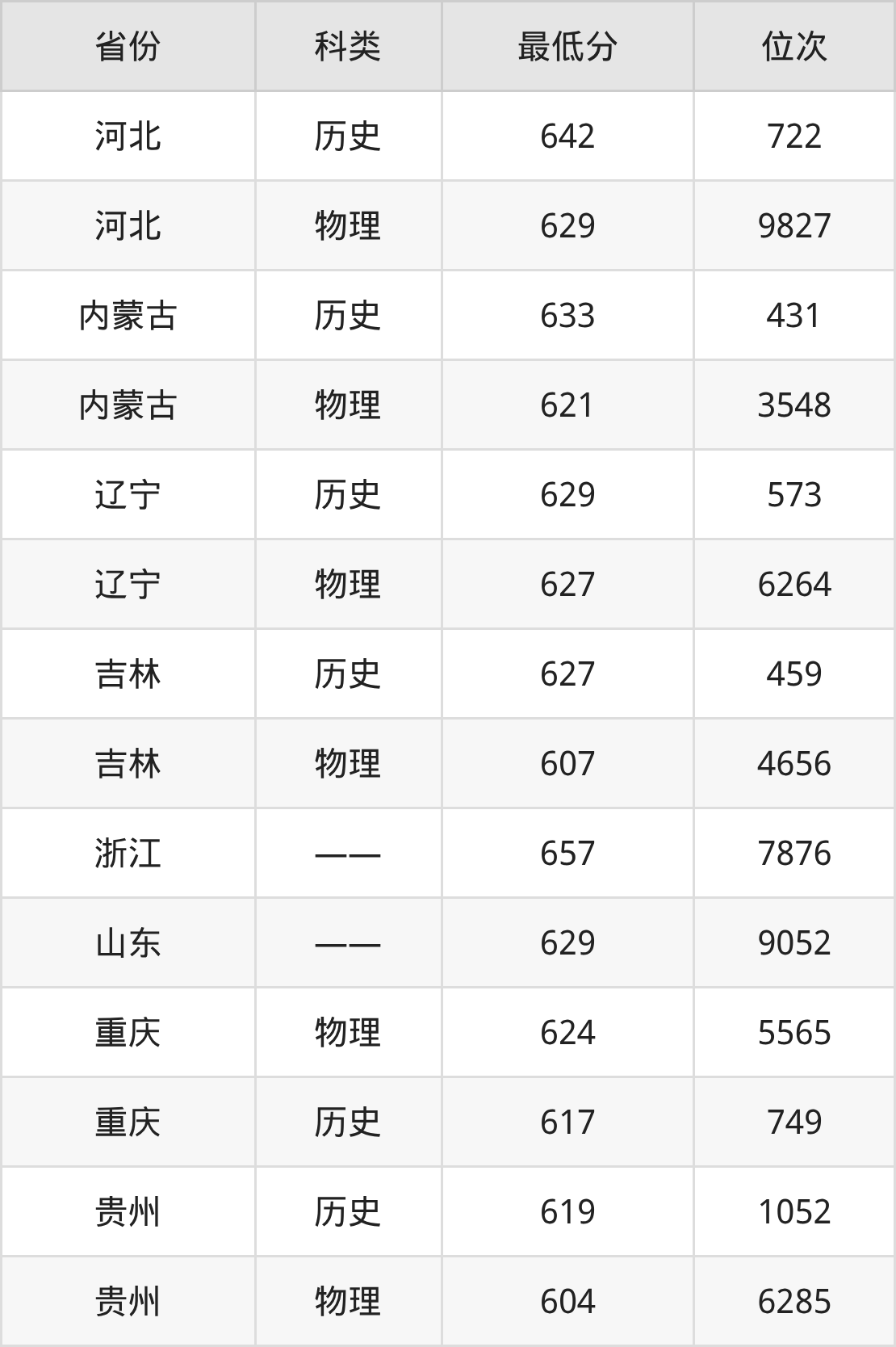 2025年对外经济贸易大学金融学类专业在贵州录取最低分:历史组是619分,对应位次排名是1052名;物理组是604分,对应位次排名是6285名。