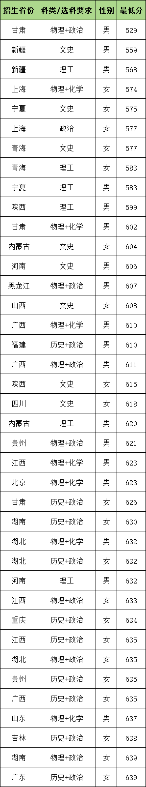 除上述省份外,其余省份上中国人民公安大学的最低分如下,供参考: