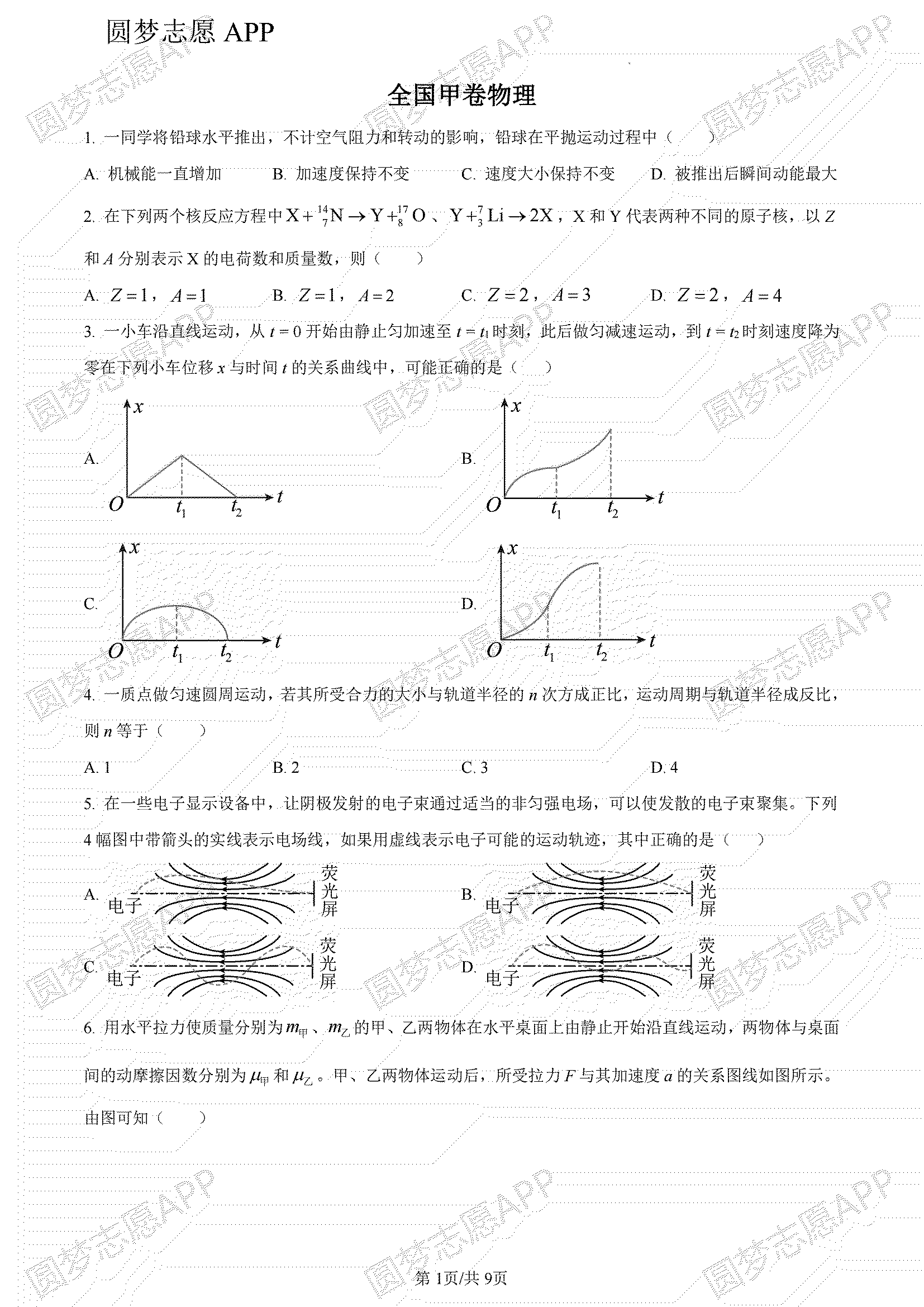 2023高考全国甲卷将于2023年6月7日进行考试,为了方便大家在高考考后估分对答案,本文为大家整理了2023年高考全国甲卷各科答案及试卷解析汇总,含高考全国甲卷语文、数学、英语、文综、理综等科目试卷答案,一起来看看2023全国甲卷真题试卷及答案解析吧!