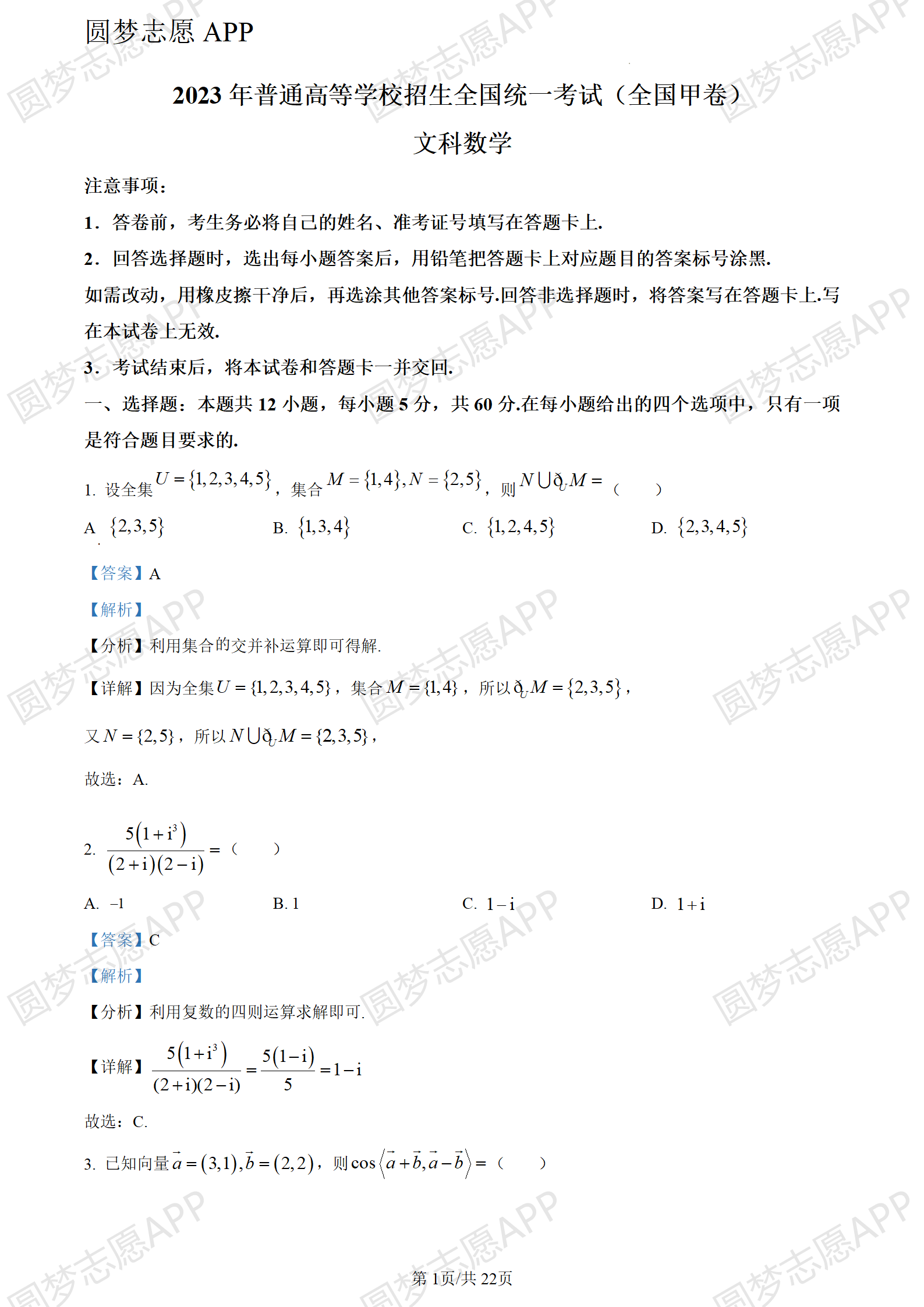 2023高考全国甲卷真题试卷及答案解析(完整真题试卷):