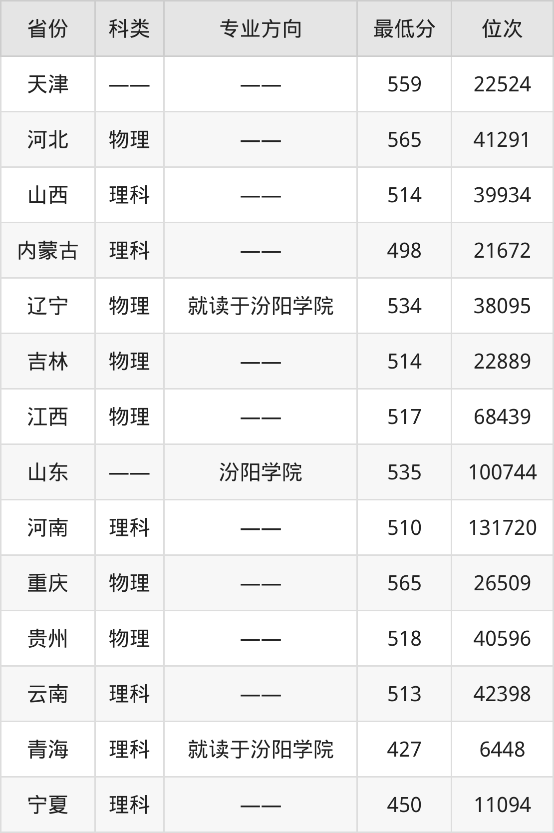 2024年山西医科大学医学检验技术专业在江西录取最低分:517分,对应位次排名是68439名。