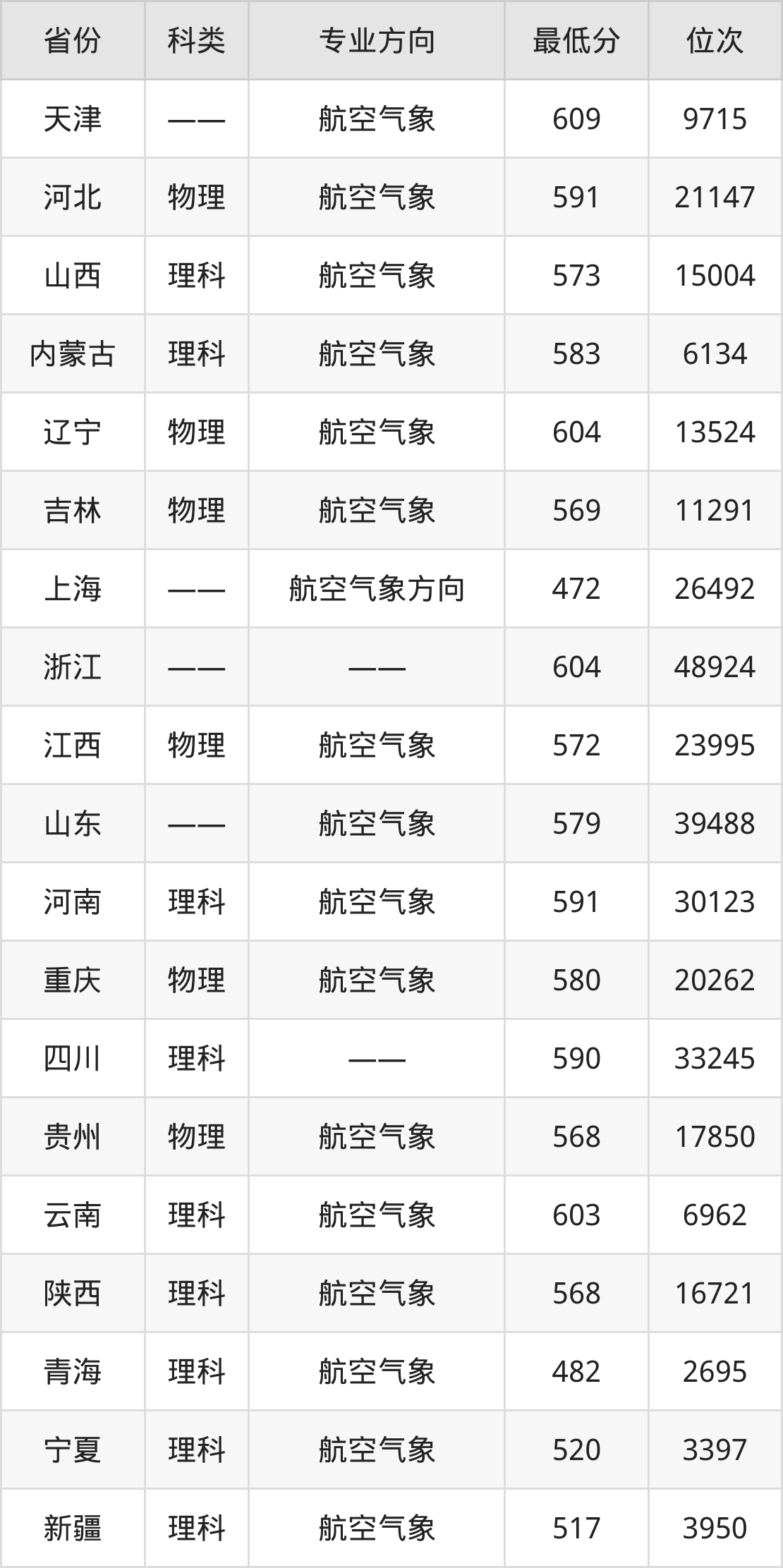 2024年中国民航大学应用气象学专业在全国19个省市招生,录取最低分从472分到609分不等,下面老师为大家具体介绍。