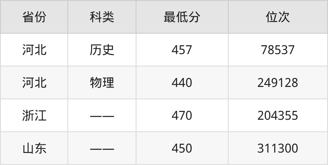 2025年浙江旅游职业学院酒店管理与数字化运营专业在河北录取最低分:历史组是457分,对应位次排名是78537名;物理组是440分,对应位次排名是249128名。