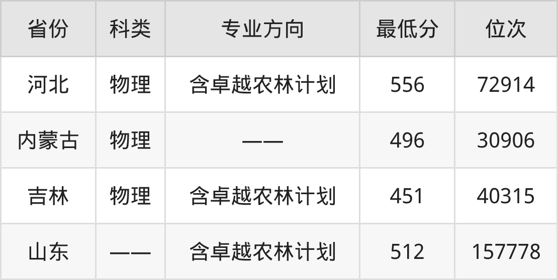 2025年内蒙古农业大学农业机械化及其自动化专业在山东录取最低分:512分,对应位次排名是157778名。