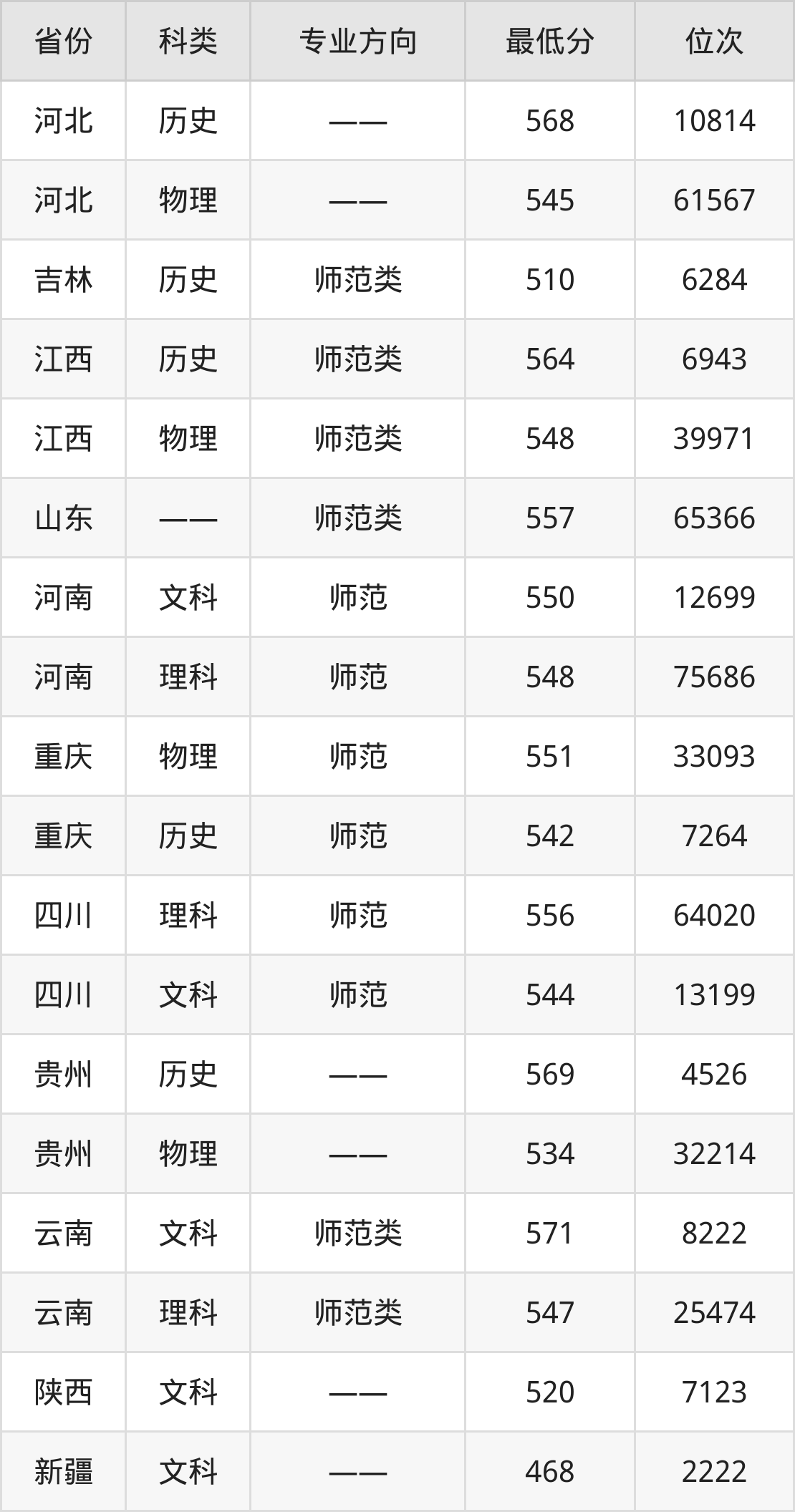 2024年长江大学教育学类专业在河南录取最低分:文科是550分,对应位次排名是12699名;理科是548分,对应位次排名是75686名。