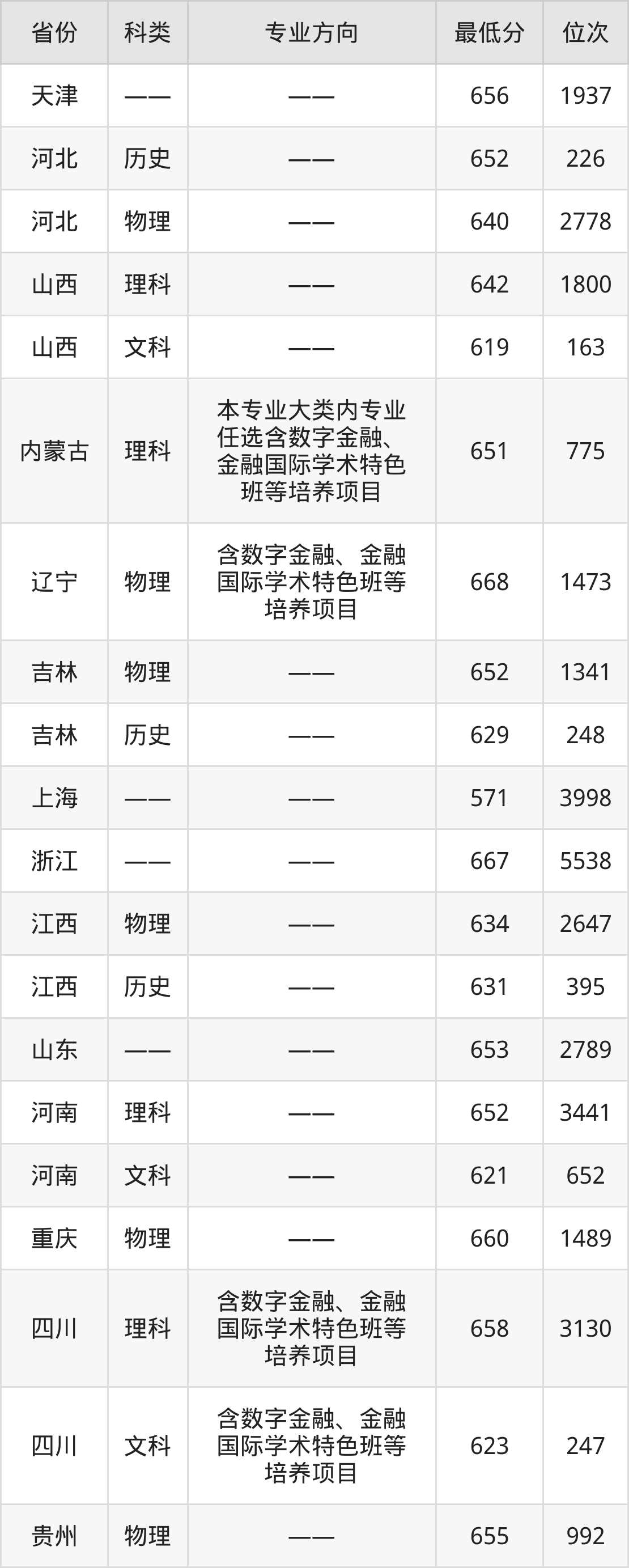下面是2024年南开大学金融学类专业录取分数线一览表: