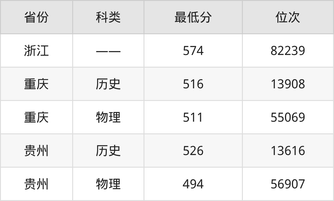 2025年重庆科技大学酒店管理专业在浙江录取最低分:574分,对应位次排名是82239名。