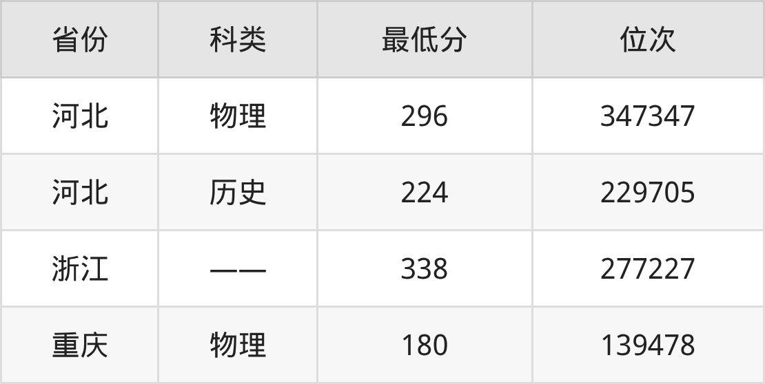 2025年四川文轩职业学院工业机器人技术专业在河北录取最低分:物理组是296分,对应位次排名是347347名;历史组是224分,对应位次排名是229705名。