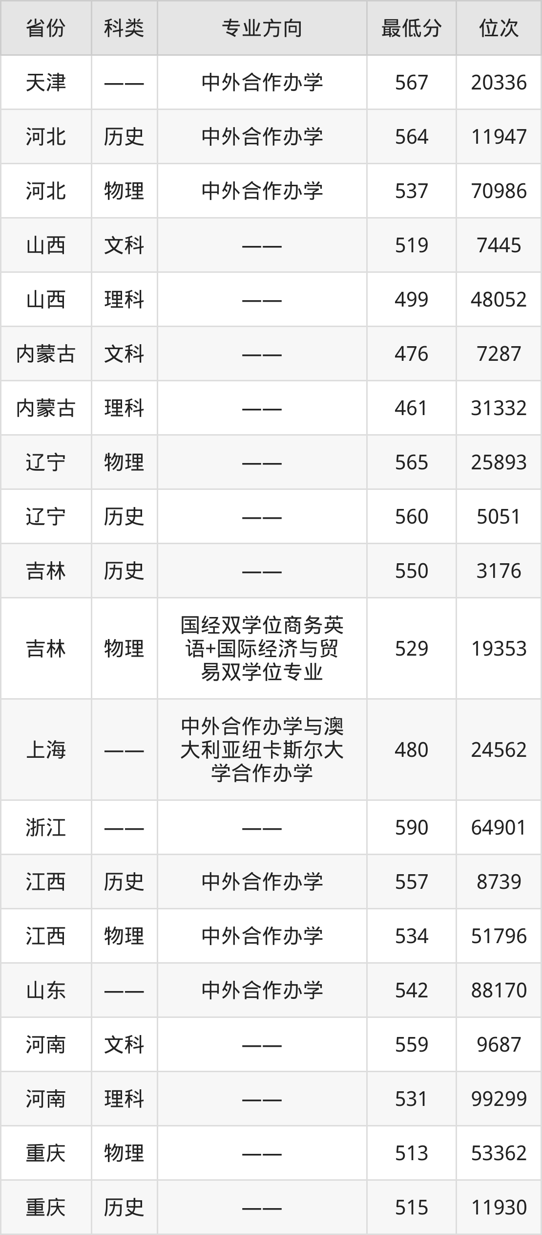 2024年四川外国语大学商务英语专业在吉林录取最低分:历史组是550分,对应位次排名是3176名;物理组是529分,对应位次排名是19353名。
