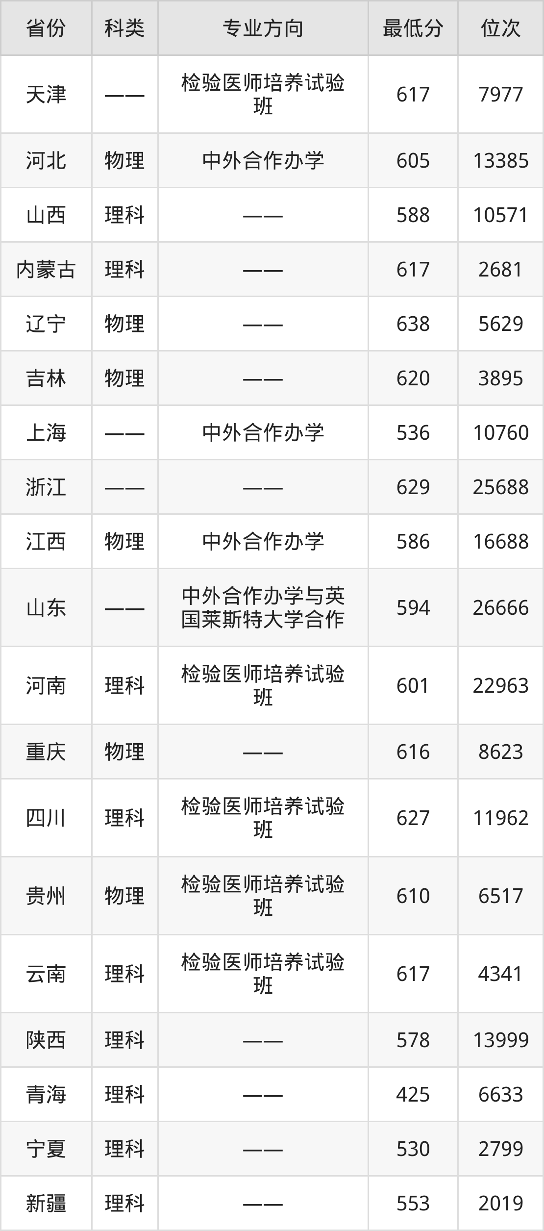2024年重庆医科大学临床医学专业在山西录取最低分:588分,对应位次排名是10571名。