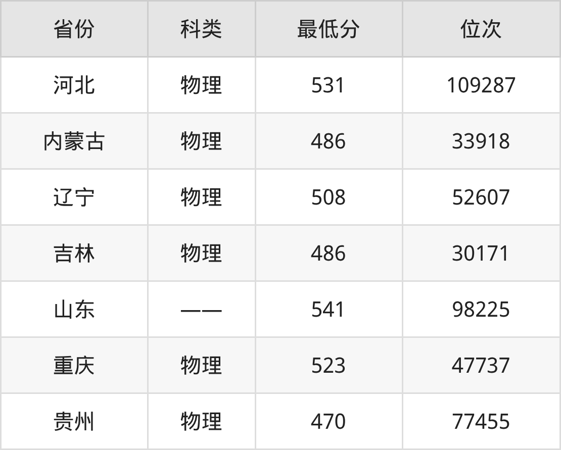 2025年承德医学院护理学专业在贵州录取最低分:470分,对应位次排名是77455名。