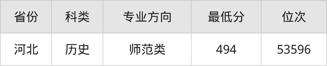 2025年广西师范大学学前教育专业在河北录取最低分:494分,对应位次排名是53596名。