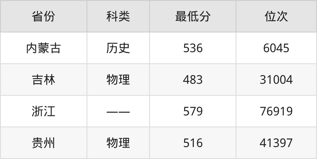 | 省份 | 首选 科目 | 招生名额 |