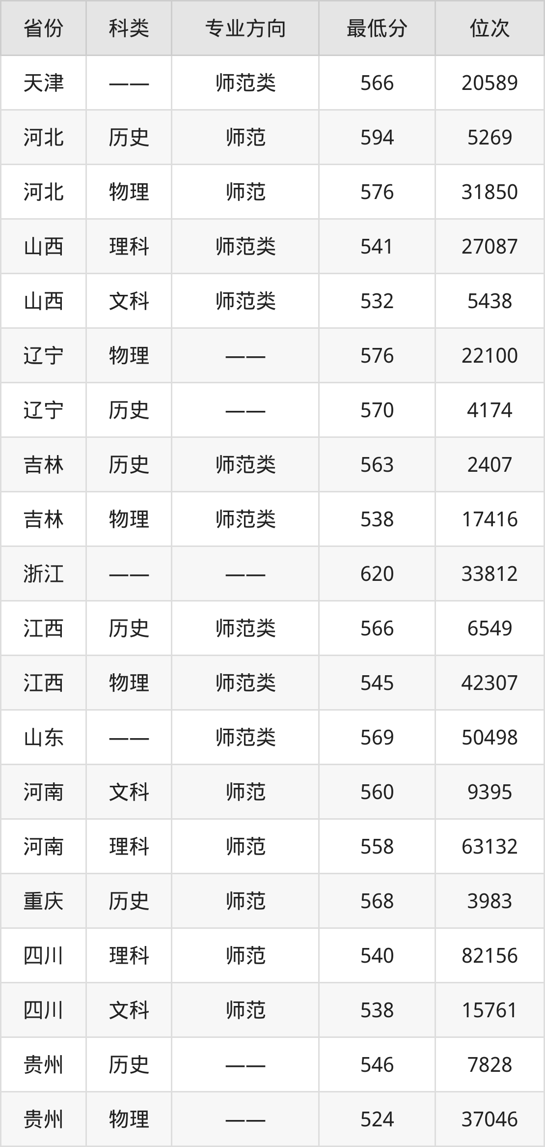 2024年天津师范大学教育学类专业在江西录取最低分:历史组是566分,对应位次排名是6549名;物理组是545分,对应位次排名是42307名。