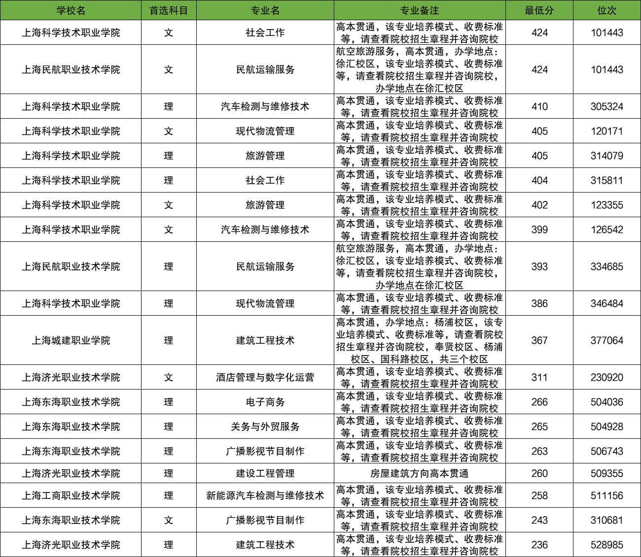 (3)上海科学技术职业学院:社会工作专业404分;