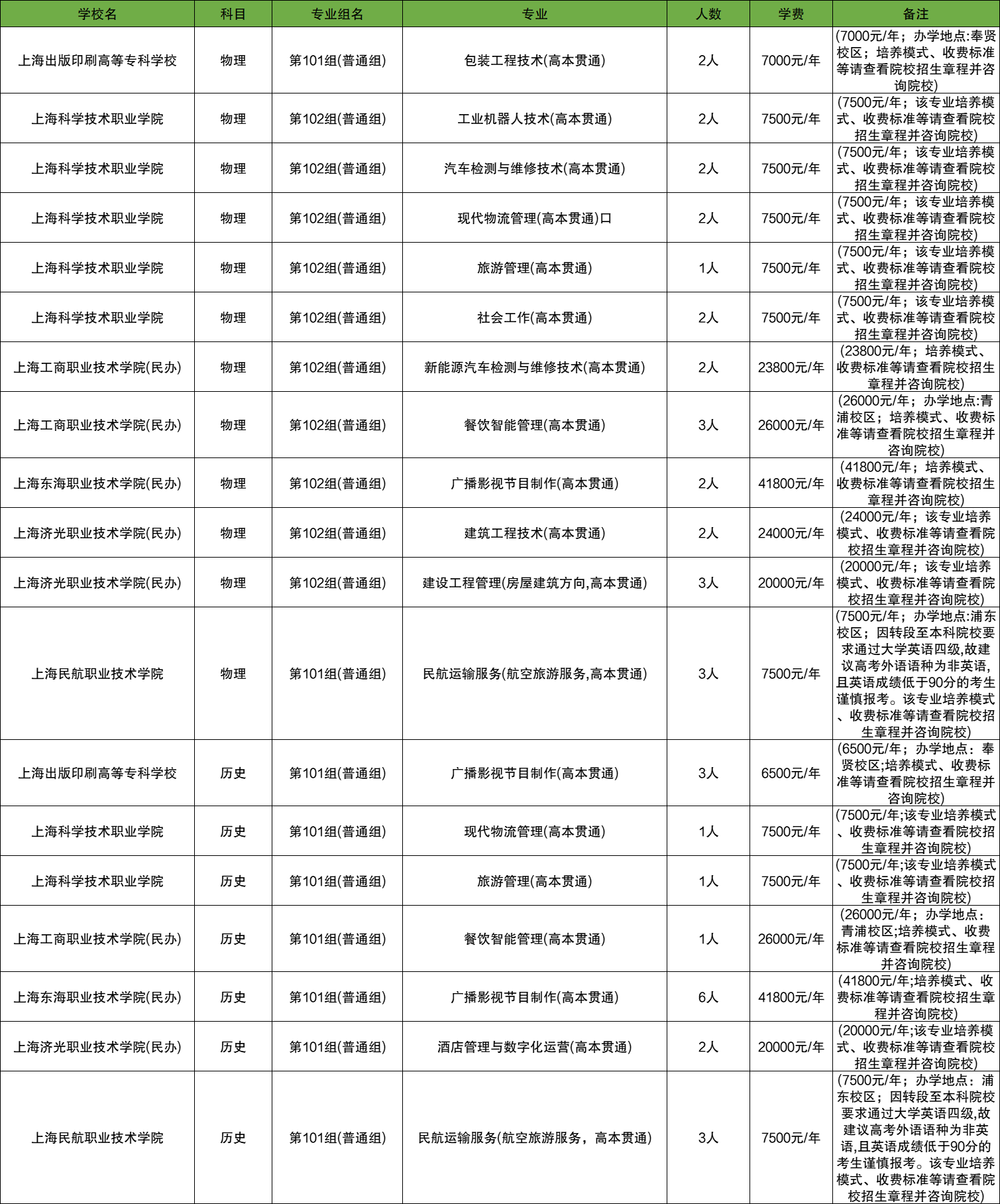 (2)上海科学技术职业学院:旅游管理专业405分;